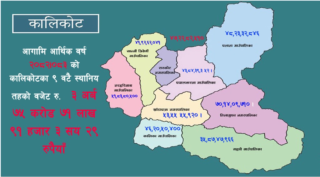 कालिकोटका ९ वटै स्थानिय तहले गरे बजेट सार्वजनिक, कुल ३ अर्ब ७५ करोड ।।