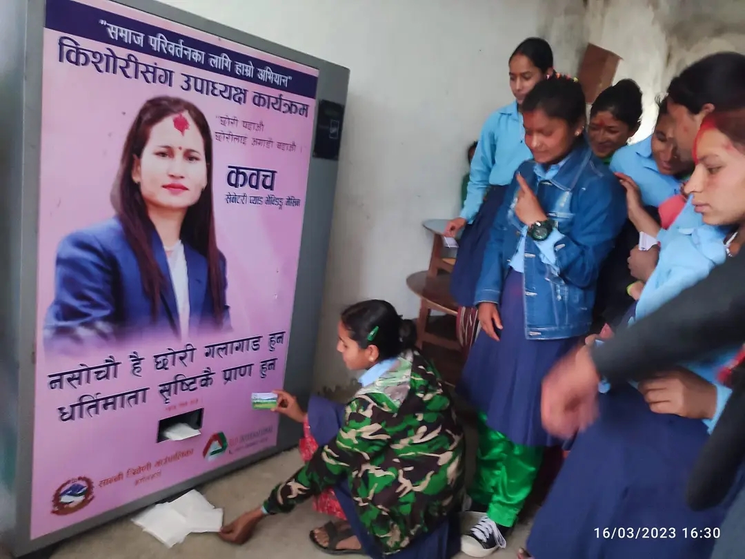 महिनावारी हुँदा किसोरी विद्यालय जान नसक्ने भएपछि सान्नी त्रिवेणी गाउँपालिकाले विद्यालयमै पुगेर भेन्डीङ मेसीन दिन थालेको छ । किशोरी सँग उपाध्यक्ष कार्यक्रम अन्तर्गत सान्नी त्रिवेणी गाउँपालिकाका माध्यामिक विद्यालयहरुमा महिनावारी भएको वेला कोहि पनि किशोरीहरु विद्यालय जान वाट वञ्चित नहुन भनि भेन्डीङ मेसीन वितरण गर्न थालिएको हो ।
