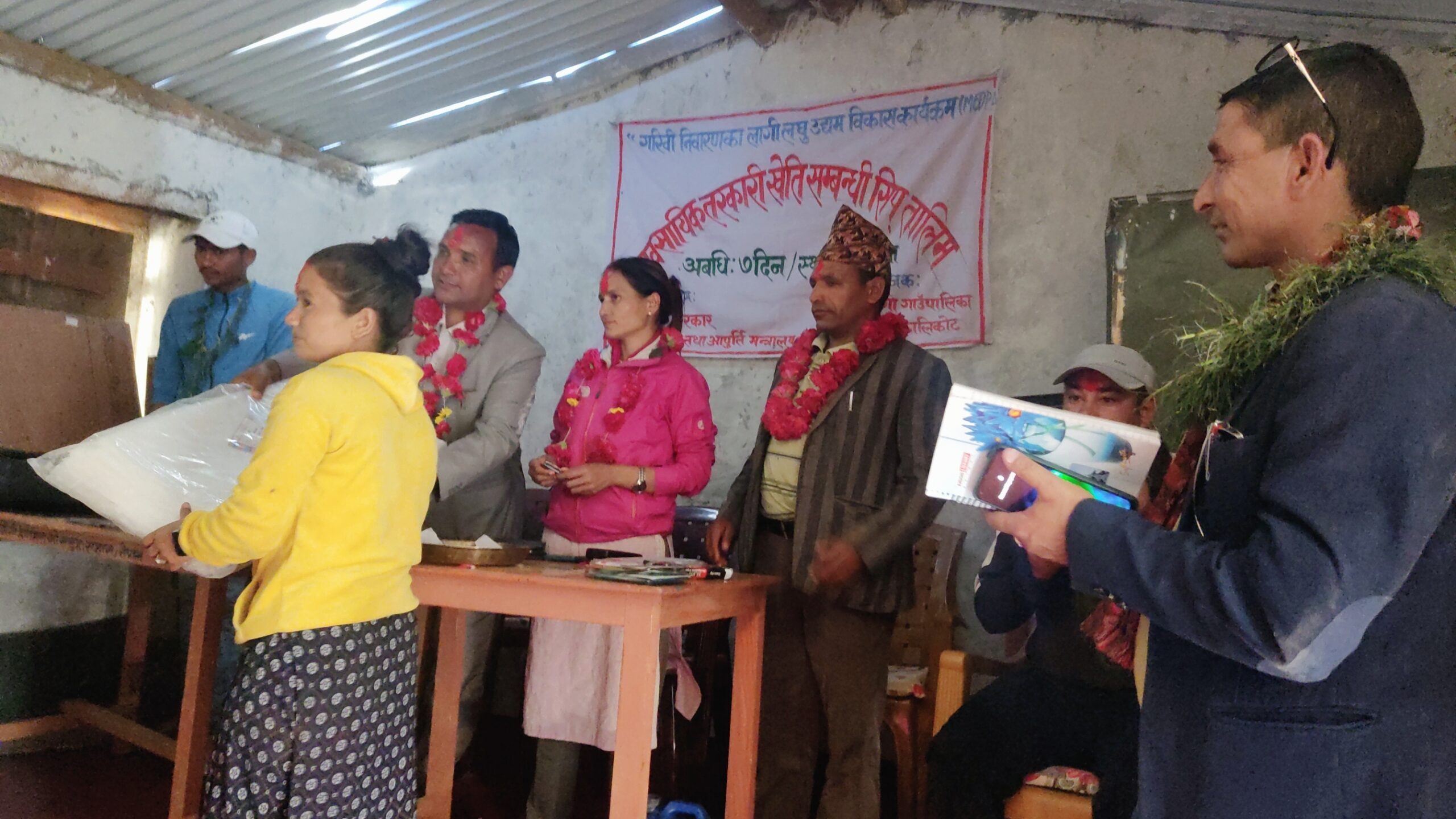 तामिममा उपस्थितहरुलाई प्रविधि सामान पनि वितरण गरिएको छ । तालिममा सहभागी ३२ जनालाई एक एक वटा प्लाष्टिक टर्नेल बीउ र हजारि वितरण गरिएको उद्योग शाखाका प्रमुख पंख बहादुर वटालाले जानकारि दिनज भयो ।
